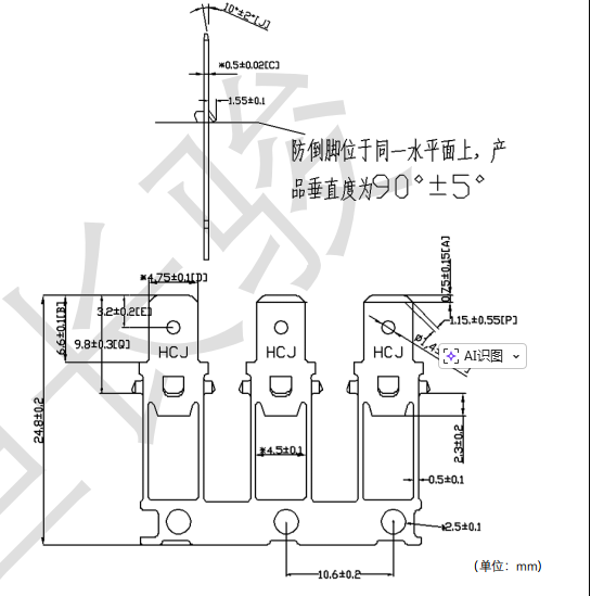 250 PCB Tab Terminal-Paper carrier tape -Vertical/Straight orientation