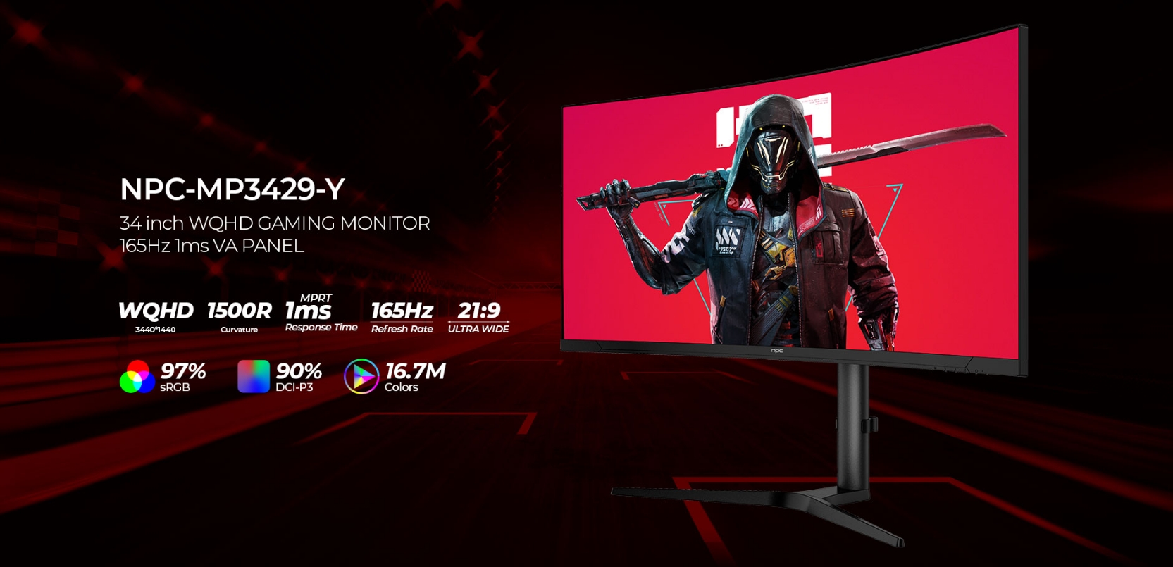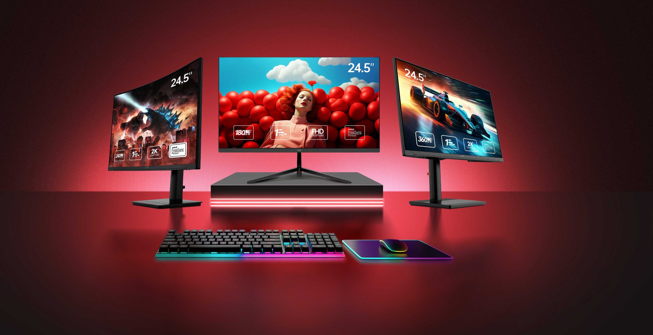 NPC monitors have great refresh rate of 165Hz, lightning-fast 1ms GtG response time, and AMD FreeSync Premium Pro, giving you a smooth, tear-free gameplay experience.
